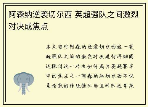 在阿森纳主场大胜对手后,他们表现出强烈的求胜欲望和追赶领先者的决心。此战不仅是他们保持冠军争夺希望的关键一役,也为接下来的比赛积累了信心和动力。阿森纳通过精彩的表现迎来了强势反弹,证明了他们在面对强敌时的竞争力。接下来,他们将迎来一系列关键对决,这些比赛不仅对他们的联赛排名至关重要,也可能决定他们本赛季的最终成就。本文将从阿森纳主场大胜的表现、球队目前的状态、接下来的关键对决以及如何备战这些比赛等四个方面,详细分析阿森纳的形势与应对策略。