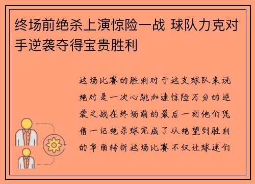 终场前绝杀上演惊险一战 球队力克对手逆袭夺得宝贵胜利